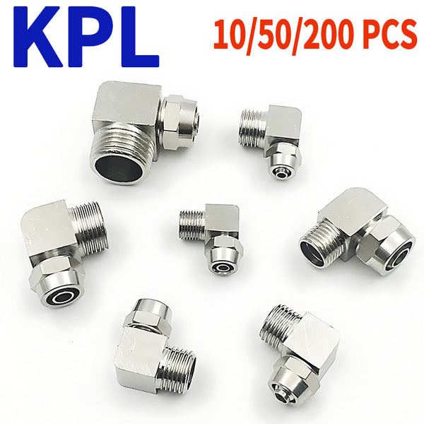 10/50/200 PCS KPL Brass Nickel Plated Pneumatic Pipe Joint for Trachea Hose Quick Tightening Elbow 1/8'' 1/4'' 3/8'' 1/2'' BSP