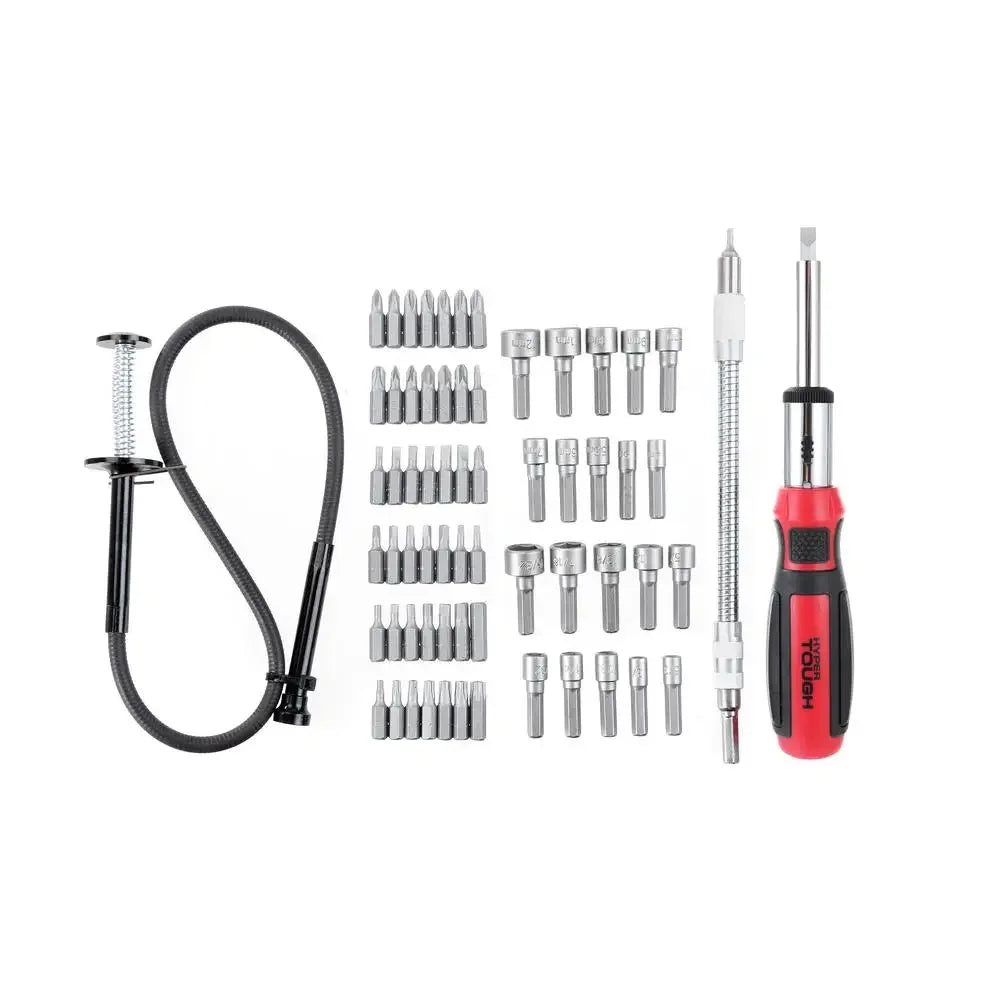 Complete numerous projects around the house and elsewhere using the Hyper Tough 67-Piece Ratcheting Screwdriver Set with Flex Magnetic Retriever.  It's a versatile kit that contains a variety of interchangeable screwdriver bits, as well as nut drivers that fit the...View more