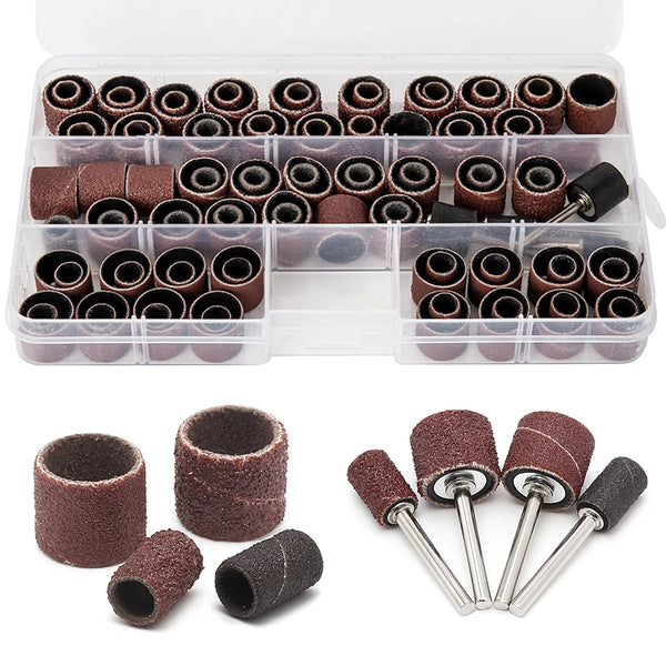 104pcs Sanding Drums Kit 80/120 Grit Nail Drill Bits Abrasive Tools Sand Mandrels for Dremel Nail Drill Rotary Abrasive Tools
