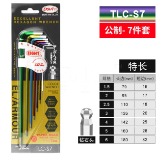 Baileys EIGHT color ball head hex wrench set