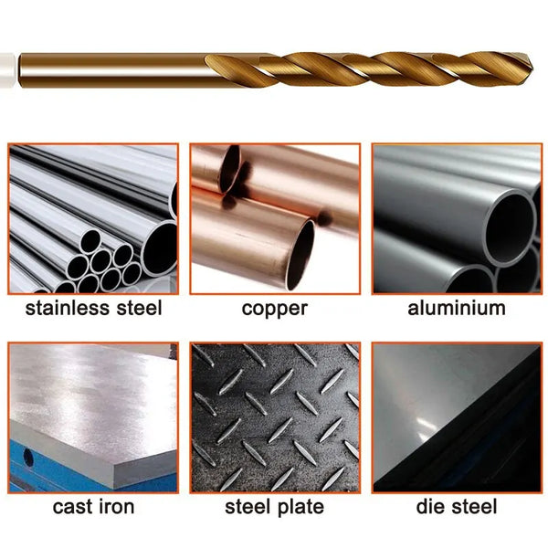• 15 adet M35 kobalt içerikli Kavrulmuş sarı düz şaftlı bükümlü matkap: Bu matkap ucu seti, 15 adet M35 kobalt içerikli Kavrulmuş sarı düz şaftlı bükümlü matkap ile birlikte gelir ve bu da onu çeşitli delme görevleri için çok yönlü bir araç haline getirir.