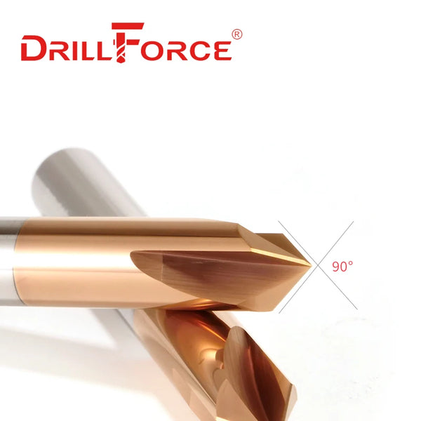 Drillforce CNC Tungsten Katı Karbür Havşa Matkap Ucu Pahlı Alüminyum Paslanmaz Çelik Freze Kesici, 90 Derece Çapak Alma Uç Frezesi